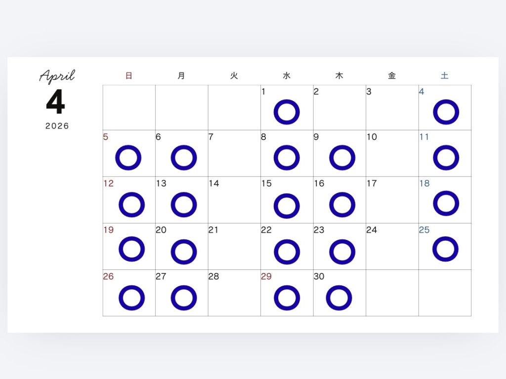 月内にシフト変更がある場合もございますので、最新のブログにてご確認ください。