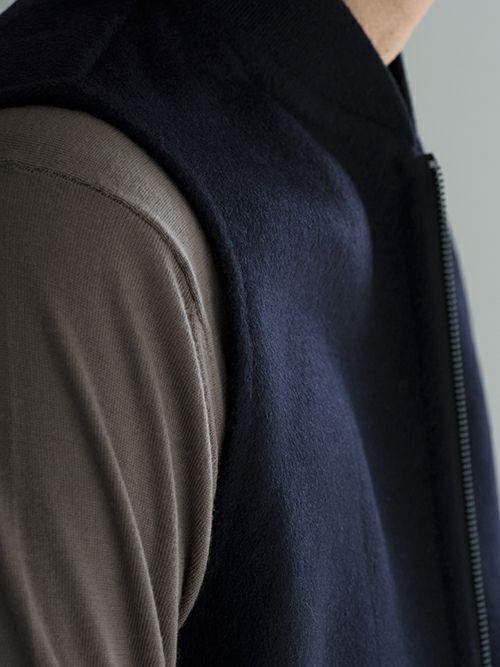 ウールのロングコートから、ショート丈のダウンジャケットまで、多様なアウターとタッグが組めるポテンシャルを持つ逸品。