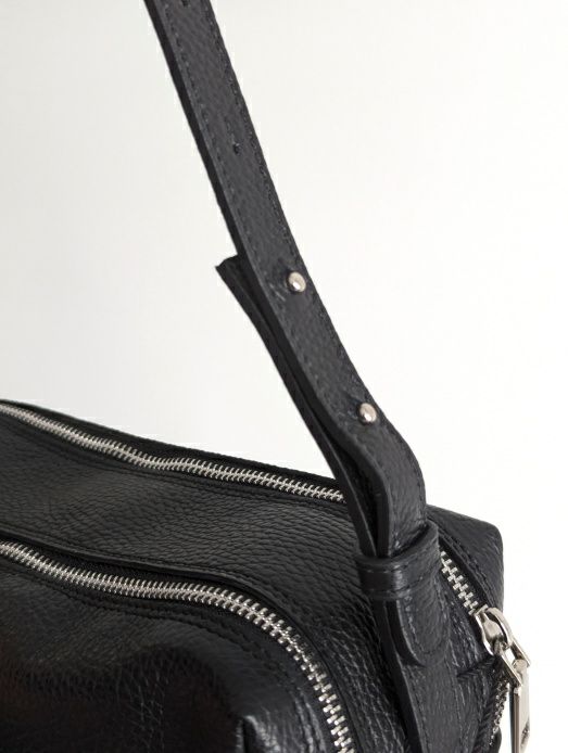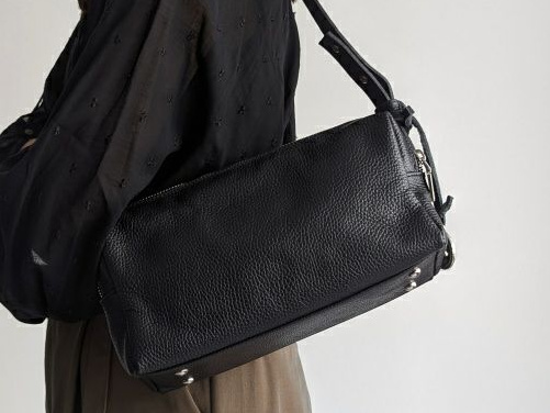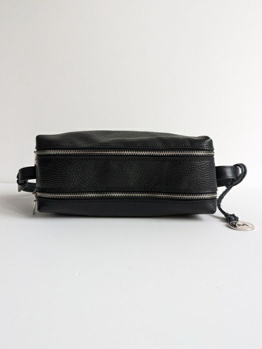 こちらは定番カラーのブラックレザーを用いたツインジップバッグ。