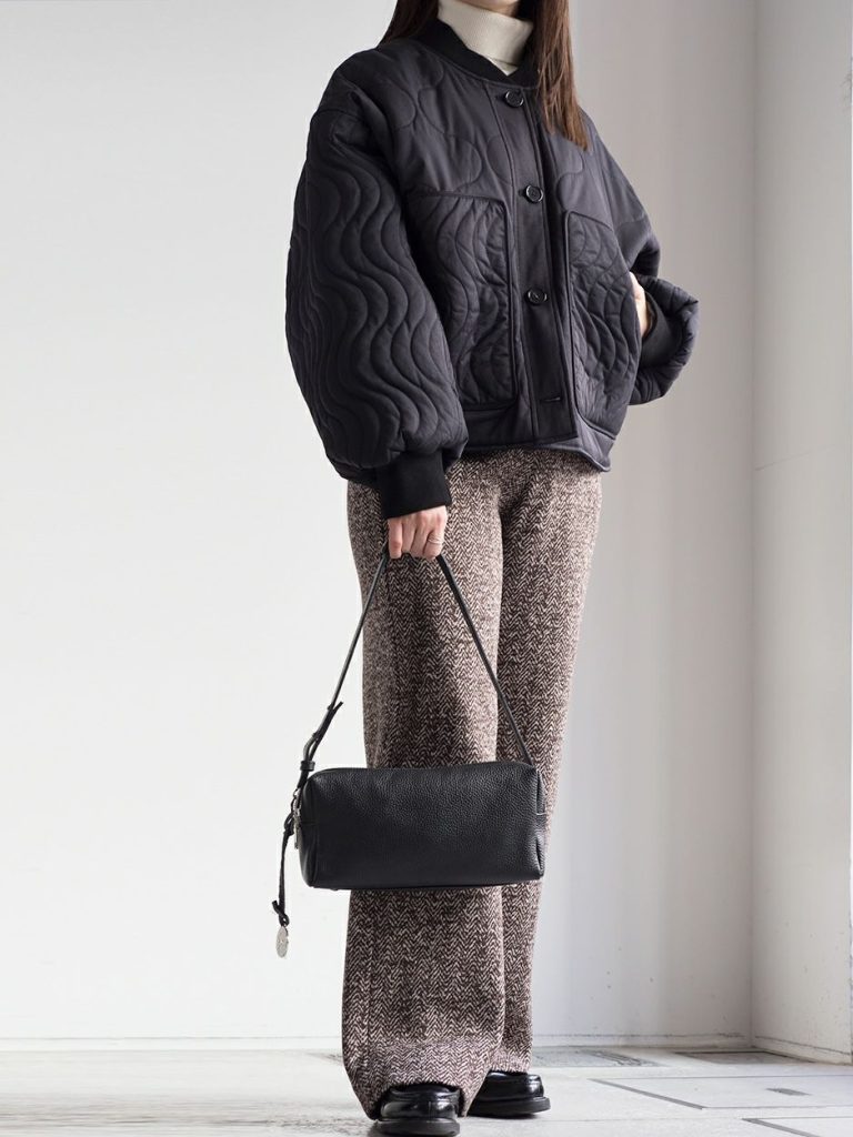 ブラックはどんなシーンにも馴染みやすく、オフィスから休日の外出までシーズンレスで活躍する万能カラーです。