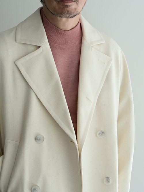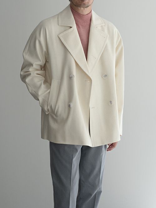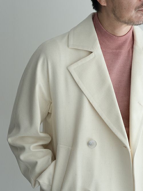 ウールブレンド生地のショートコート。防寒と謳うほどのアウターではありませんので、3月あたりの「気分は春なんだけども、まだ結構寒いDays」にぴったりかと。