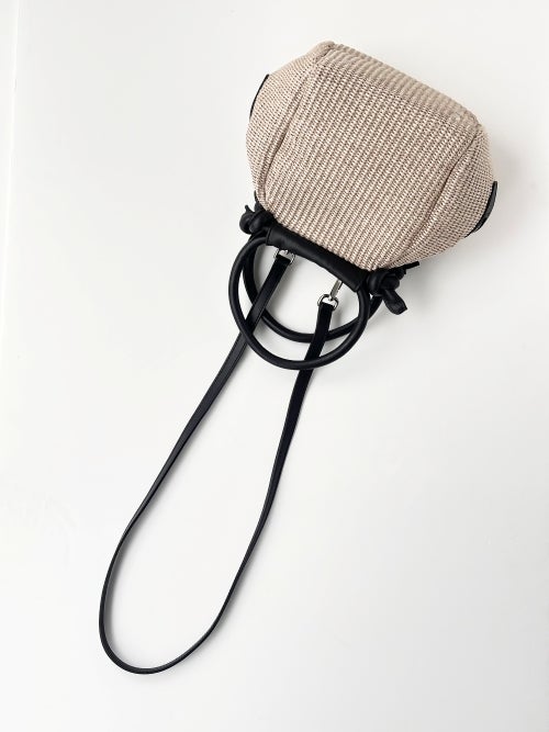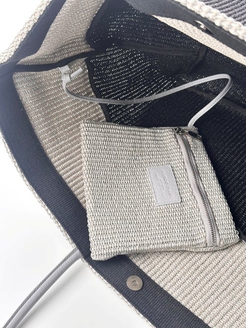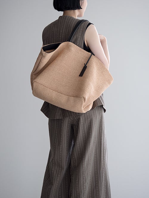コットンナイロンを丁寧に編み上げたブレード素材を使用し、天然素材のようなナチュラルな表情と都会的な雰囲気を両立させています。