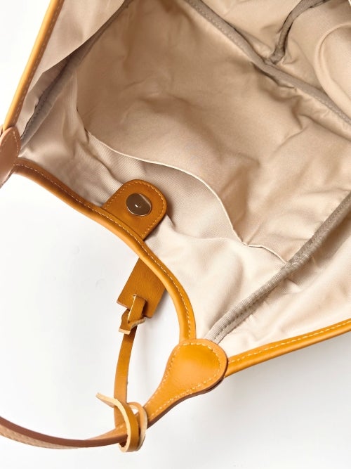 柔らかなフォルムが魅力のホーボー型トートは、肩掛けしやすいハンドルの長さと見た目以上の収納力が魅力です。