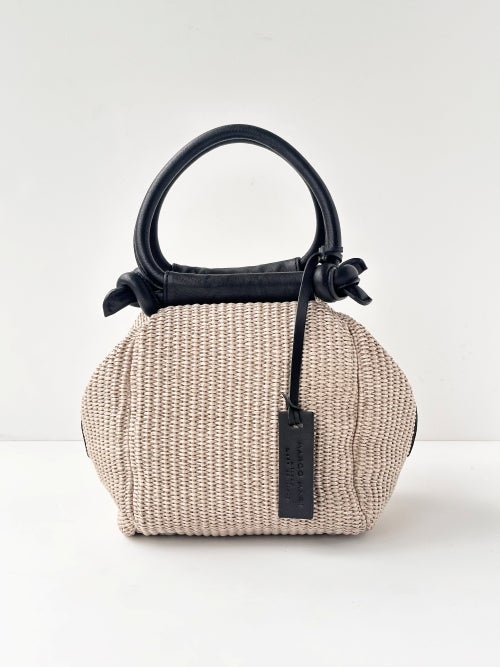 ハンドルのノットデザインがアクセントになり、カゴバッグ特有のカジュアルさにモダンな高級感をプラス。