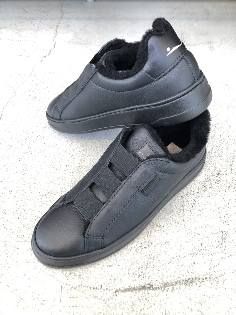 最後にシューレース無しのゴムバンドにファーライニング、これぞ冬のシンプルスニーカーの1品。