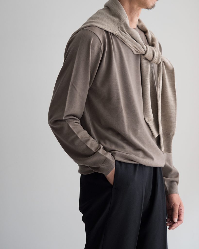 繊細な糸使いと美しい落ち感が特徴で、上品さと快適さを両立した一枚です。