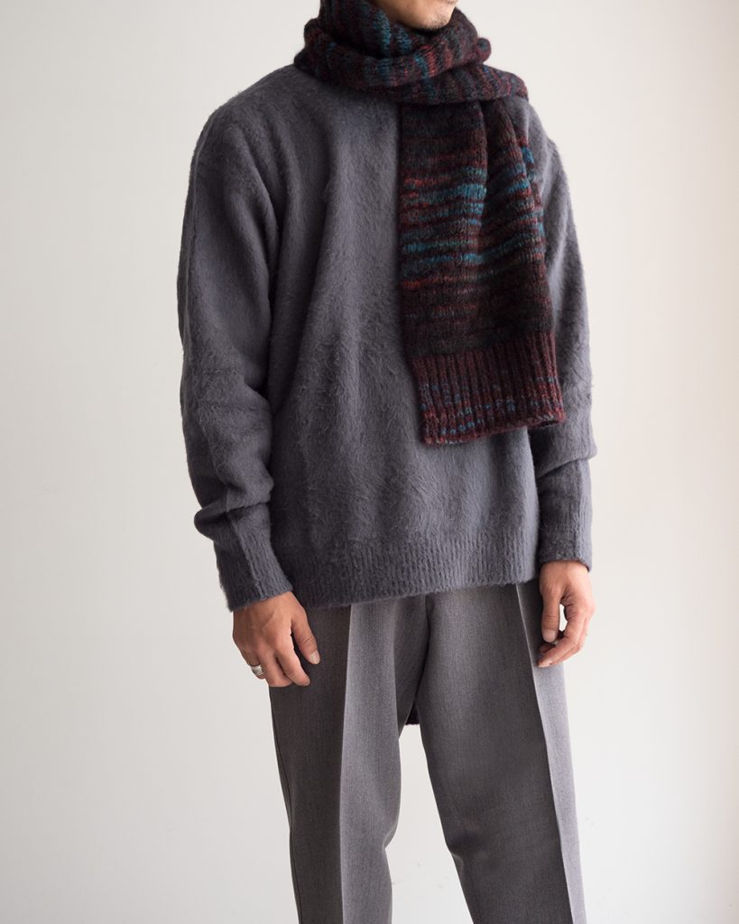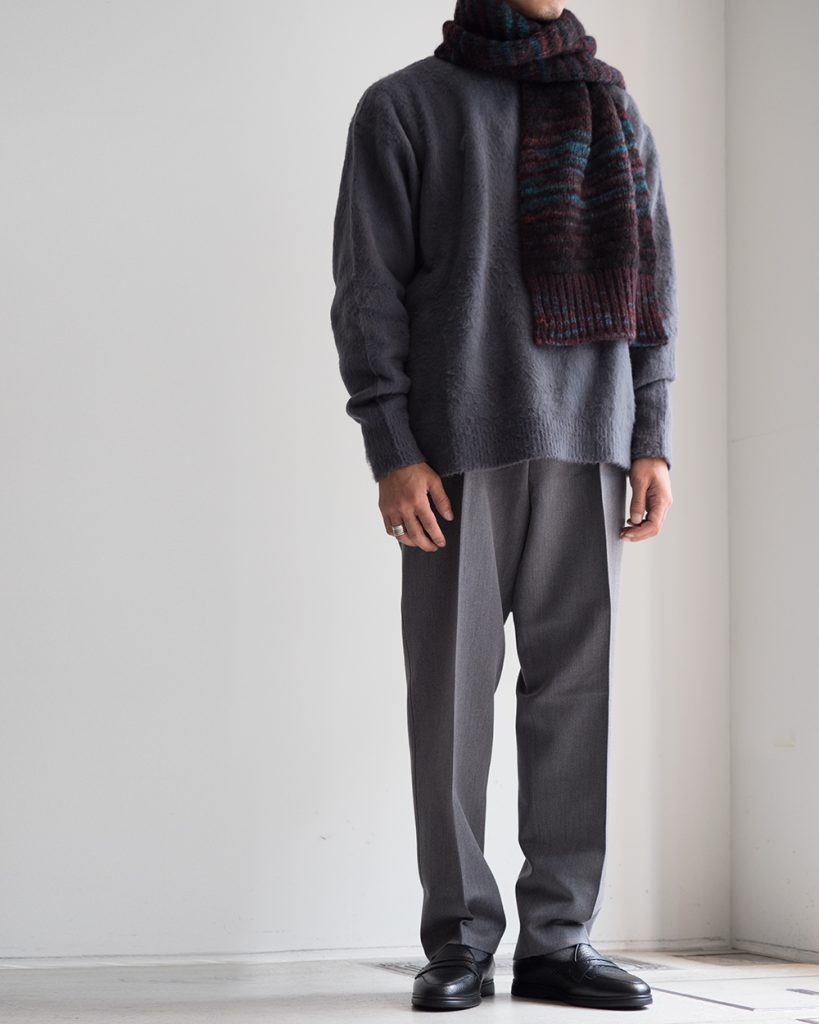 そこにボリュームのあるマフラーをプラスし、“質感の重ね”で奥行きを演出。