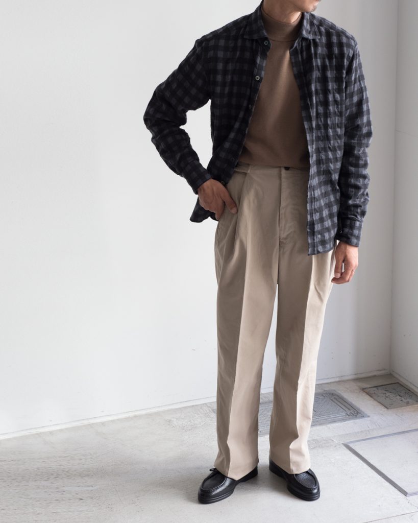 季節の変わり目には、肩の力を抜いたシャツスタイルがよく映えます。