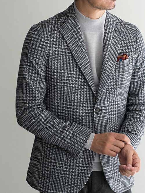 チルコロ 1901 グレンチェック柄ジャージージャケット GRAY.C